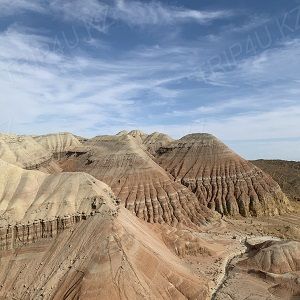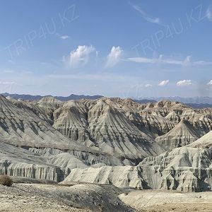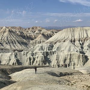 Горы Актау (в переводе с казахского языка - "белые горы") - уникальное геологическое образование, дно высохшего древнего океана, получившее свое название по основному белому цвету слагающих пород.
