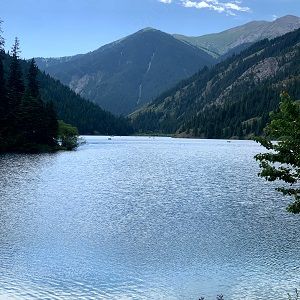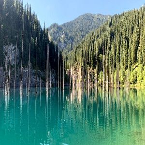 Lake Kaindy is a lake in the Almaty region of Kazakhstan, a popular tourist destination in one of the Kungei Alatau gorges. The main attraction of the lake is the spruce trees rising straight from the water. Lake Kaindy is also located on the territory of the Kolsai Kolderi National Park