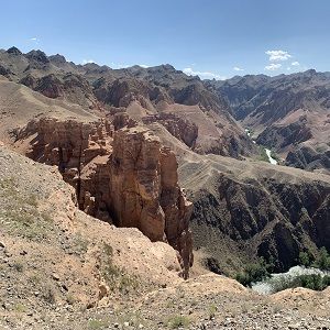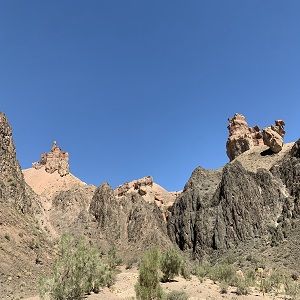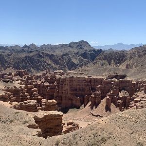 Charyn Canyon is a 154 km long canyon along the Charyn River in Kazakhstan. The canyon is located 195 km east of the city of Almaty, near the border with China. Located on the territory of three districts of the Almaty region: Uygur, Raiymbek, Enbekshikazakh.