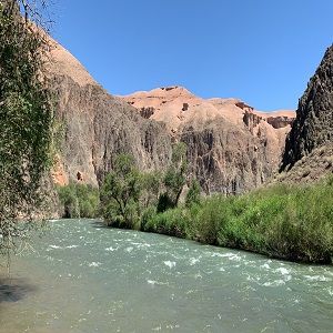 The landscape diversity of the Charyn Canyon determines the diversity of flora and fauna. More than 1,500 species of plants grow here, 17 of which are listed in the Red Book of Kazakhstan, 62 species of mammals, 103 species of nesting birds, 25 species of reptiles.